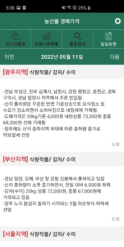 안녕하세요. 농산물 경매가격 어플을 이용 해주셔서 감사합니다.