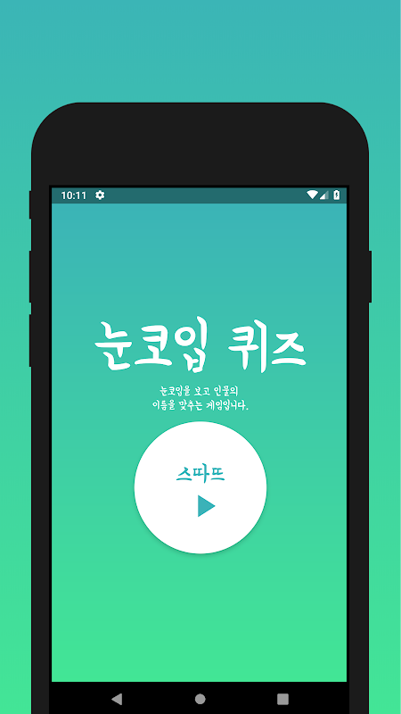 연예인의 눈, 코, 입 사진을 보고 이름을 맞추는 퀴즈 게임입니다.