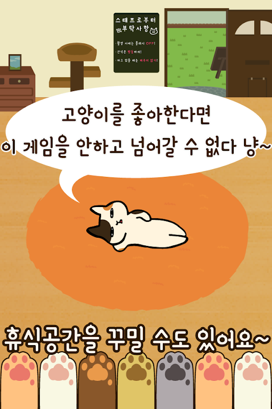 시간때우기로 할 수 있는 육성 힐링게임. 그것도 무료로 즐기면서 귀여운 고양이 캐릭터를 만나보실 수 있습니다.