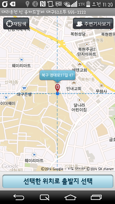 대리요청 : 현재 사용자의 위치를 네트워크(WIFI, 데이터) 또는 지도 직접선택기능을 이용하여 현재 사용자 위치를 제공 받습니다.