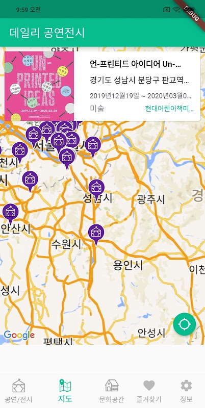 ● 내 위치를 기준으로 공연 및 전시 위치를 지도로 확인 할 수 있습니다.