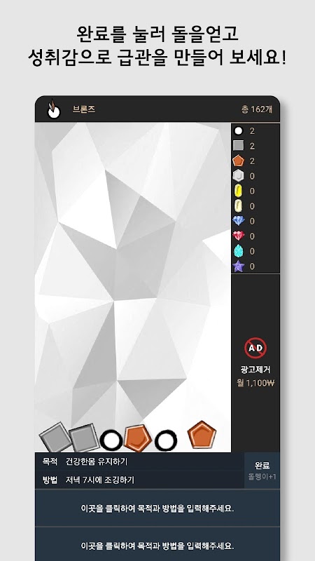 목표를 지정하고 완수할 때 마다 돌덩이 하나씩 얻을 수 있어요.