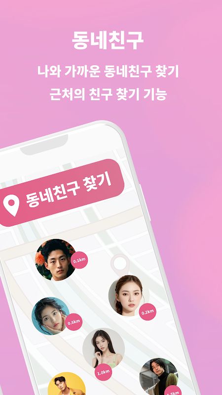- 근처 GPS 연동으로 동네친구찾기로 가까운 친구를 찾을 수 있습니다.