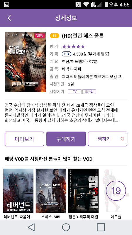 • 모바일 전용 VOD를 구매하면 TV에서든, 모바일에서든 별도의 추가 과금 없이 시청 하기 가능