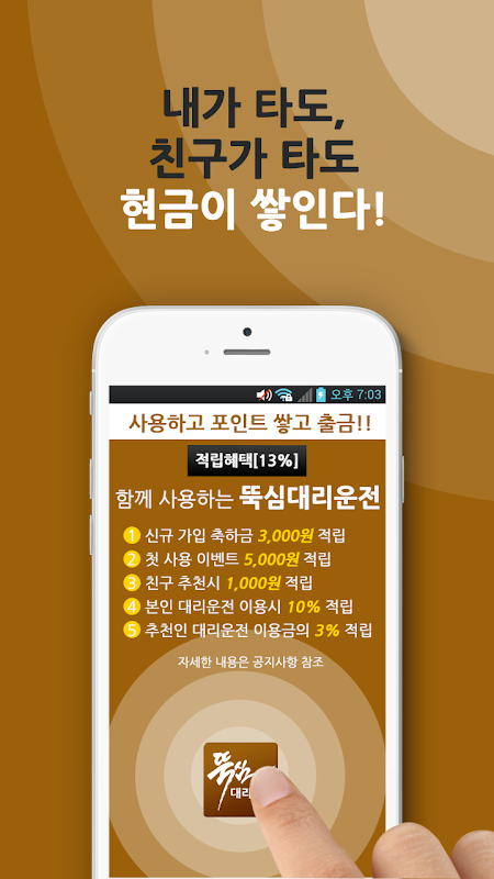 - 추천한 친구가 대리호출시 3%도 내게로 적립~