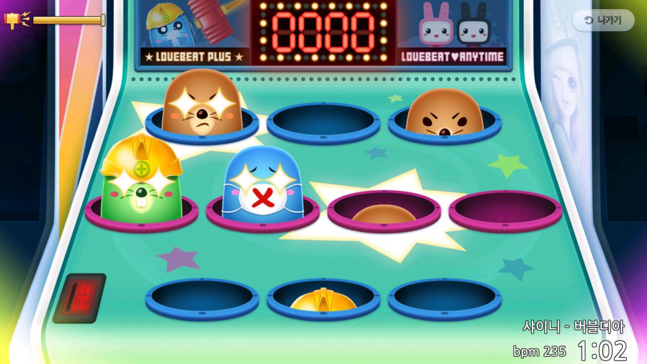 리듬에 맞춰 나오는 두더지들을 터치해서 잡으세요!