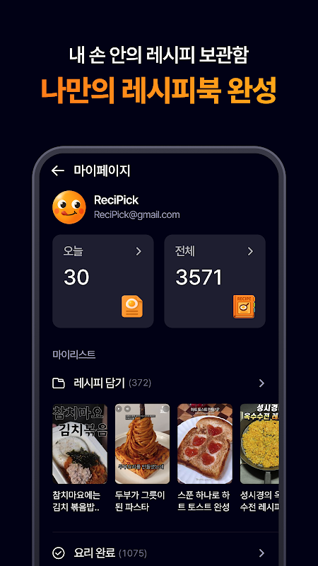 ReciPick에서 취향에 딱 맞는 레시피를 골라보세요.