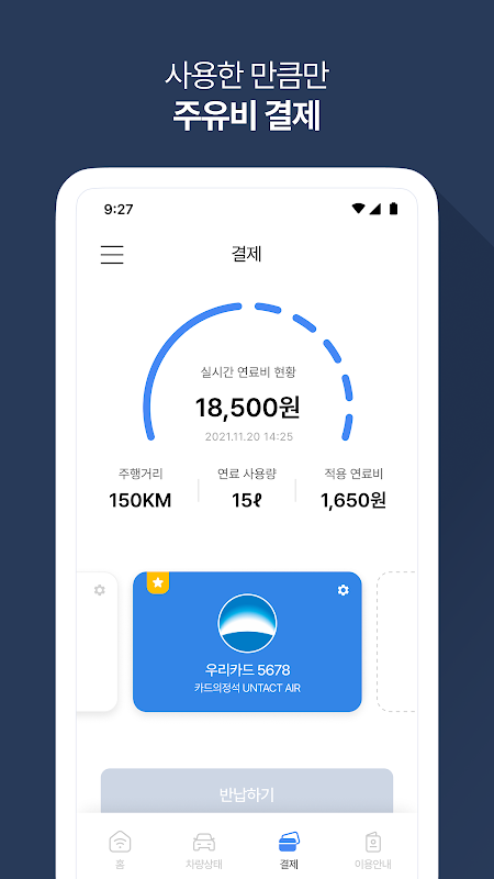 - 차량 이용 기간동안 비치 된 주유카드로 주유비를 결제 하고 차량 반납 시 사용한 만큼만 결제 됩니다.