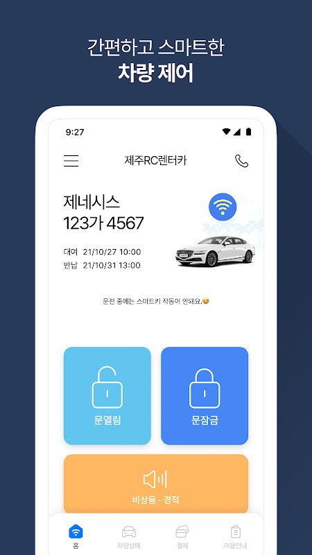 렌터카 커넥티드 서비스는 커넥티드카 차량을 예약한 고객을 위한 어플리케이션입니다.