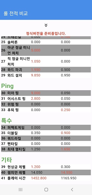 최대 20경기의 평균 데이터를 비교할 수 있어요.