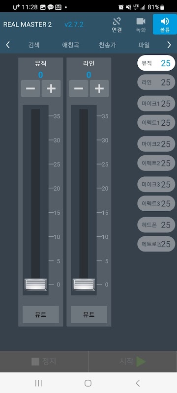 반주기의 뮤직/마이크/이펙트 볼륨을 실시간으로 조절합니다.