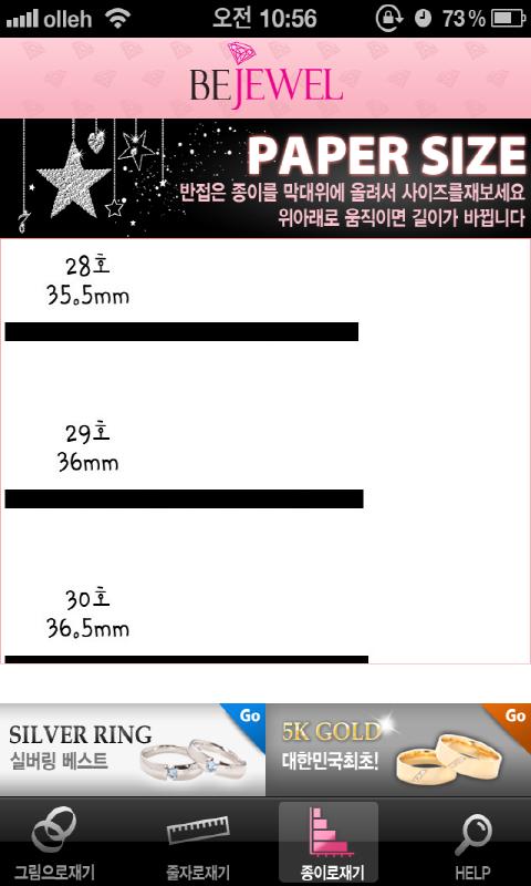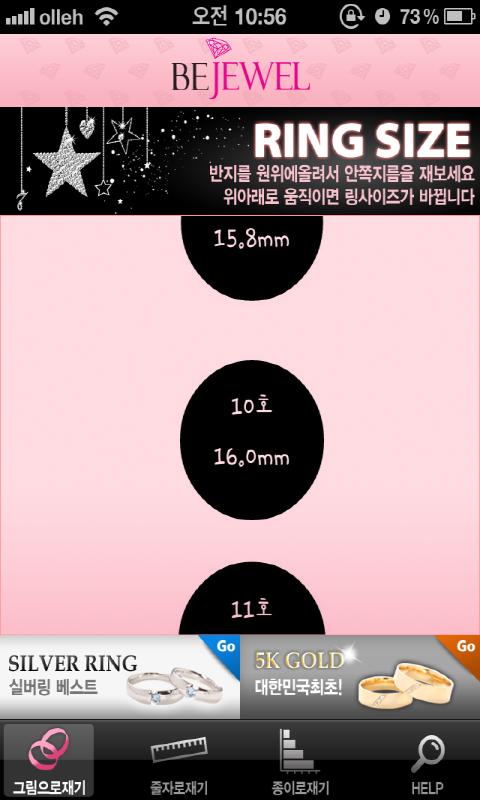 이젠 어플을 통해서 반지 호수를 측정하세요.