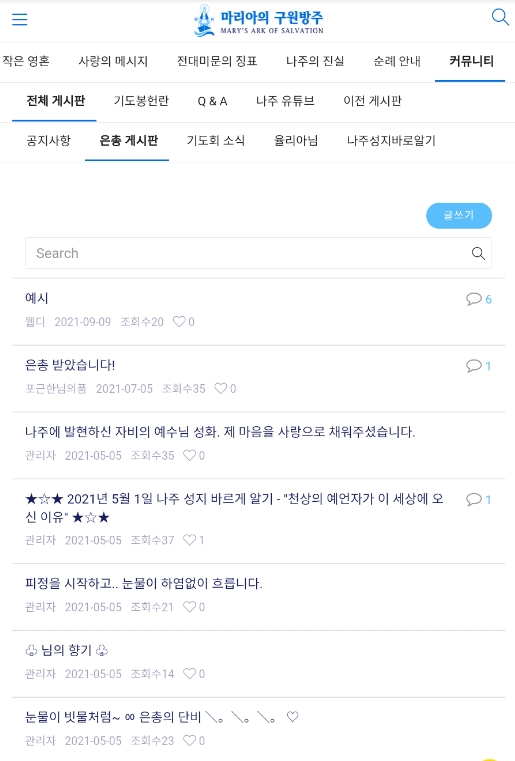 국내 유튜브 채널 : youtube.com/마리아의구원방주