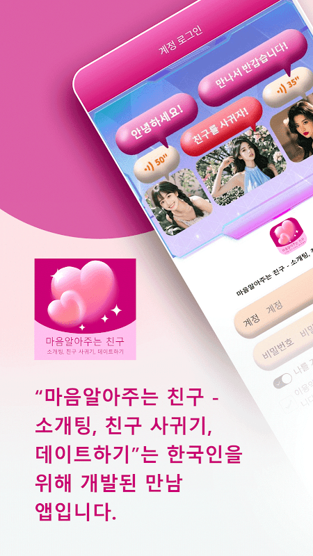 “마음알아주는 친구 - 소개팅, 친구 사귀기, 데이트하기”는 한국인을 위해 개발된 만남 앱입니다