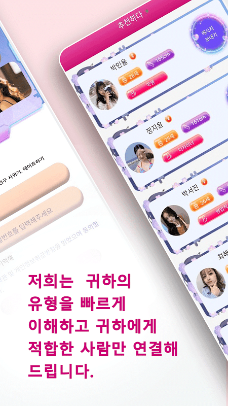 저희는 귀하의 유형을 빠르게 이해하고 귀하에게 적합한 사람만 연결해 드립니다.