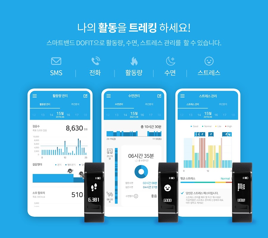 • 수면관리(+ Dofit밴드): 수면을 측정해보세요. 얕은수면, 깊은수면, 수면효율을 분석해드립니다.