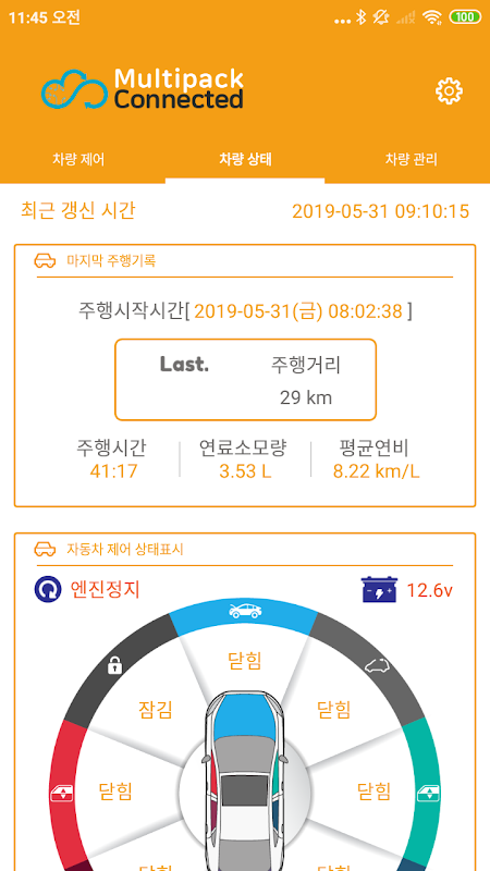 창문은 닫고 내렸는지, 도어는 제대로 잠겼는지 원격으로 상태를 확인 할 수 있습니다. 원격으로 제어 할 수 있는 항목 뿐만아니라 배터리 전압, 타이어 공기압 등 중요한 정보도 같이 확인 할 수 있습니다.