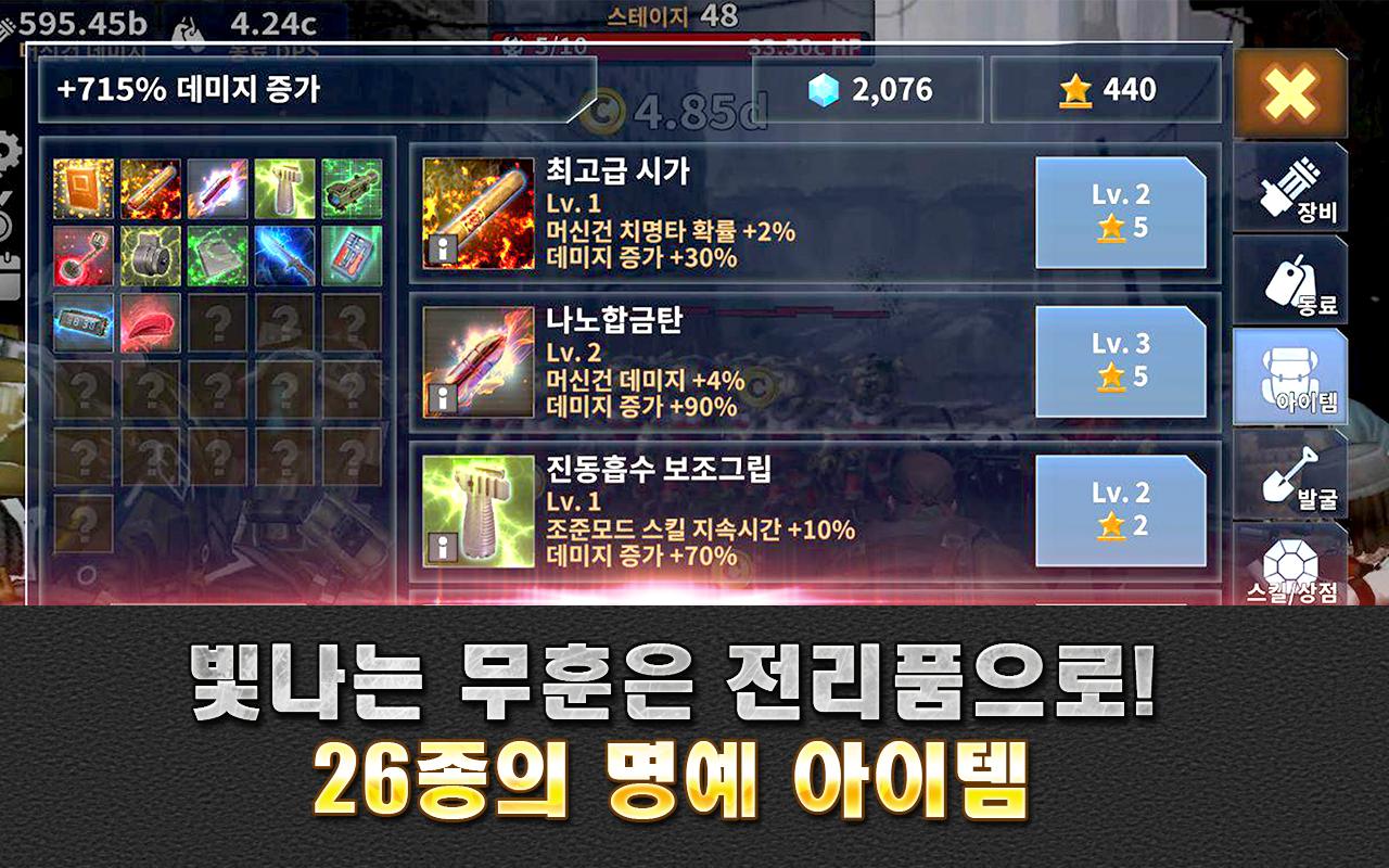 전투에서 얻은 명예점수로 총 26종의 다양한 능력의 아이템 수집