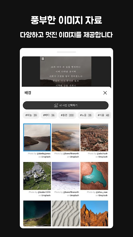 - 다양한 폰트와 레이아웃, 배경이미지를 제공합니다.