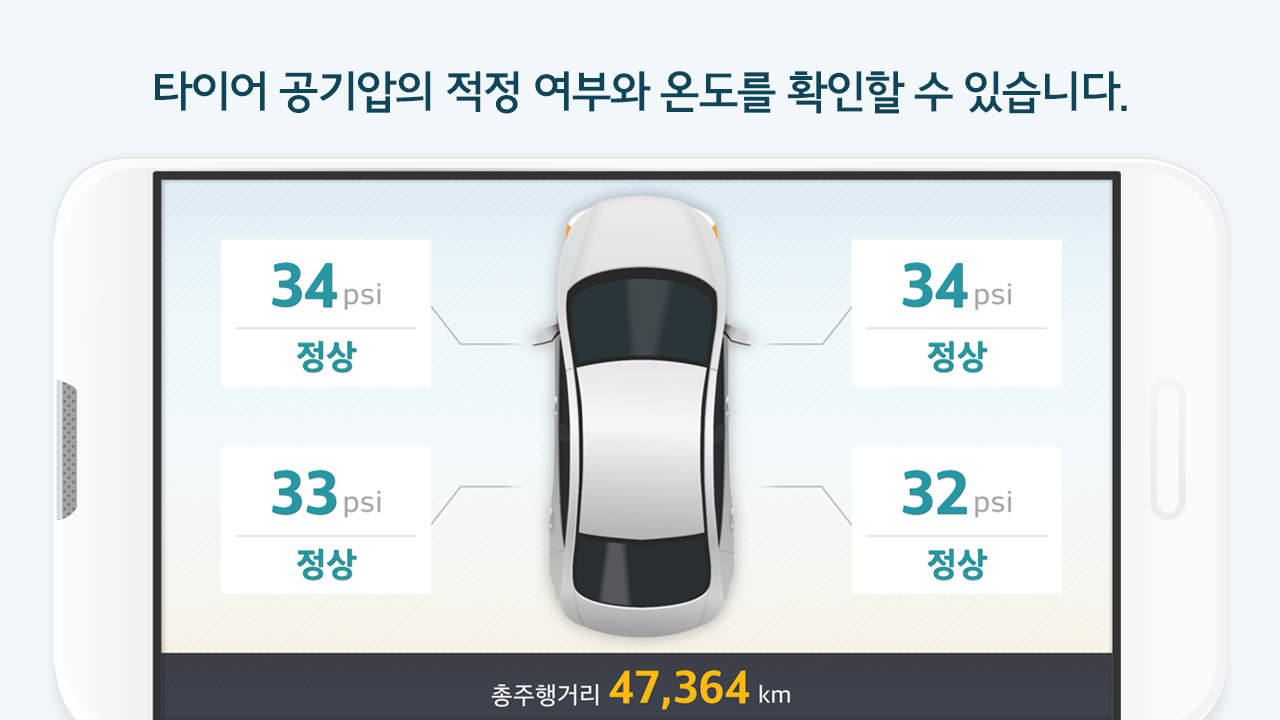 (순정 TPMS 가 장착된 차량에 한해 모니터링 됩니다. 현대/기아 차는 타이어 온도까지 모니터링 됩니다. )