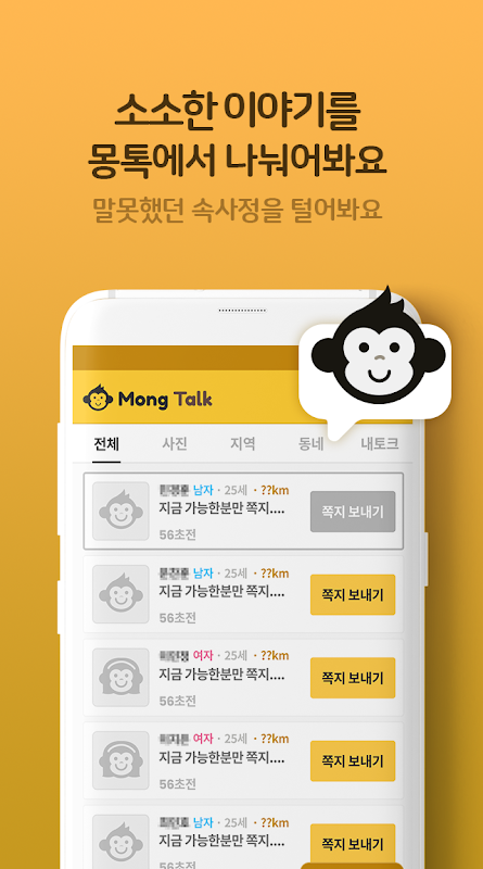 시간은 줄이고 인연은 쉽게 만날 수 있는 몽톡으로 랜덤채팅의 진수를 경험해 보세요~