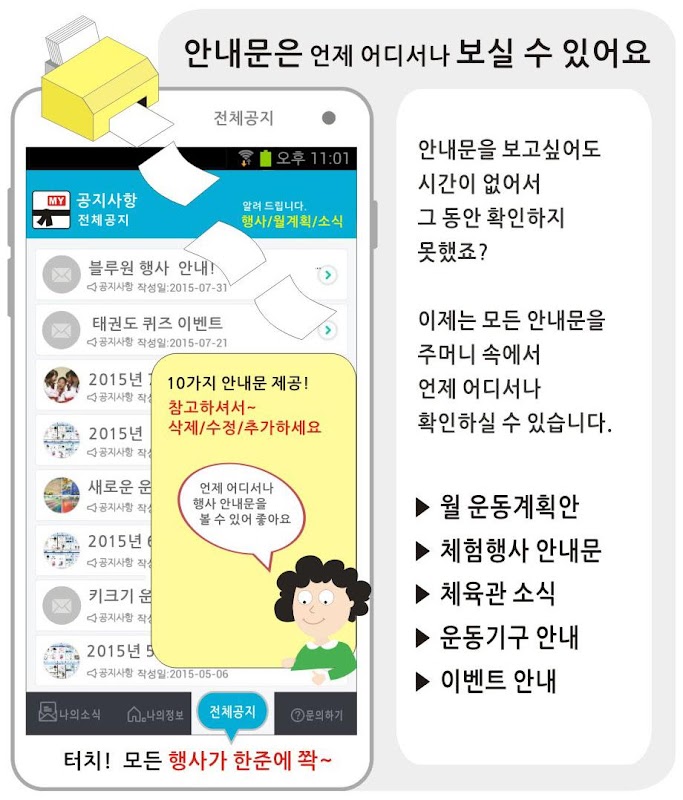 그 동안 용지로 안내문을 받았던 방식에서 이제는 어플로 언제 어디서나 보실 수 있습니다.