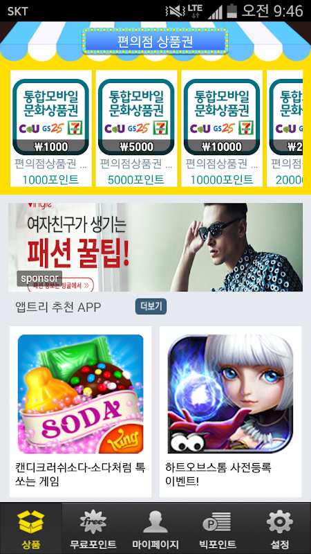무료 포인트로 모바일 문화상품권 받아서 편의점에서 간식사고 또는 리그오브레전드(LOL) 등 게임에서 아이템구매하세요
