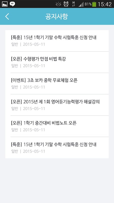 5. 밀크T중학의 전체 공지사항 확인