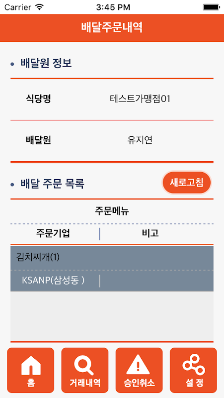 가맹점 전용 실시간 거래관리 및 배달용 어플
