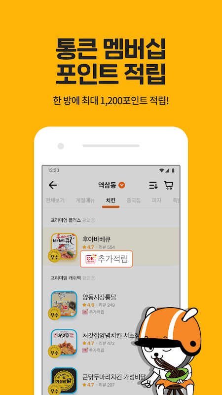 - 주문 시 배달통 포인트와 OK캐쉬백 포인트 더블 적립