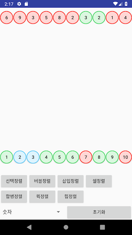 정렬알고리즘의 진행을 눈으로 보고 조작할 수 있습니다