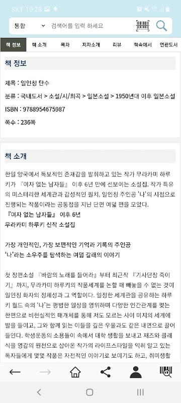 - 카메라 : 도서 후면의 바코드를 휴대폰 카메라를 이용하여 검색 기능