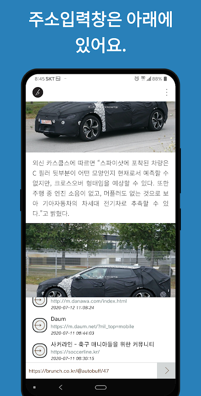 * 처음 설치하면 홈페이지가 등록되어 있지 않습니다. 우선 원하시는 웹 사이트를 검색한 후 띄워 하단 바 '뷰박스' 아이콘을 길게 눌러 홈페이지로 바로 등록하세요.