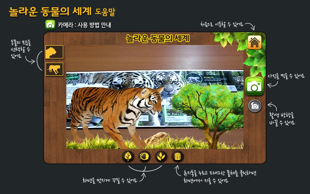 - AR(Augmented Reality, 증강현실)을 기반으로 다양한 증강현실 책의 이미지를 인식하여 페이지 별로 해당 내용과 연관된 증강현실 애니메이션을 보여주는 어플리케이션 입니다.