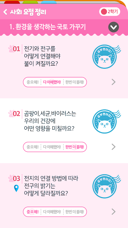 사회, 과학 요점 APP을 스마트 폰에 다운받아 항시 휴대하면서 이동 시간이나 여유 시간에 암기에 활용할 수 있습니다.