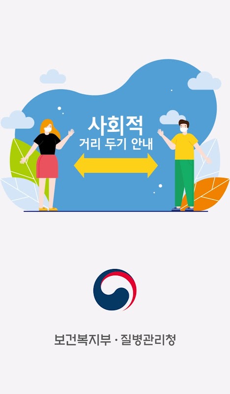 보건복지부와 질병관리청에서 제공하는 '사회적 거리 두기 안내' 모바일 앱 입니다.