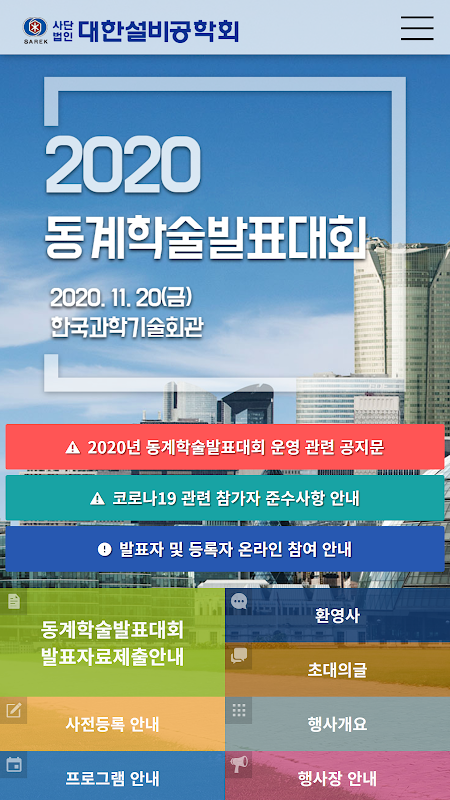 대한설비공학회 2020년도 동계학술발표대회 어플리케이션입니다.회원 여러분의 많은 참여 바랍니다.