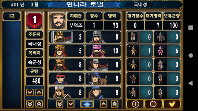 ㅇ 전투 화면 : 병력을 배치하고 목적에 따라 전투를 진행한다.