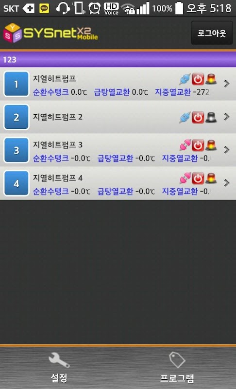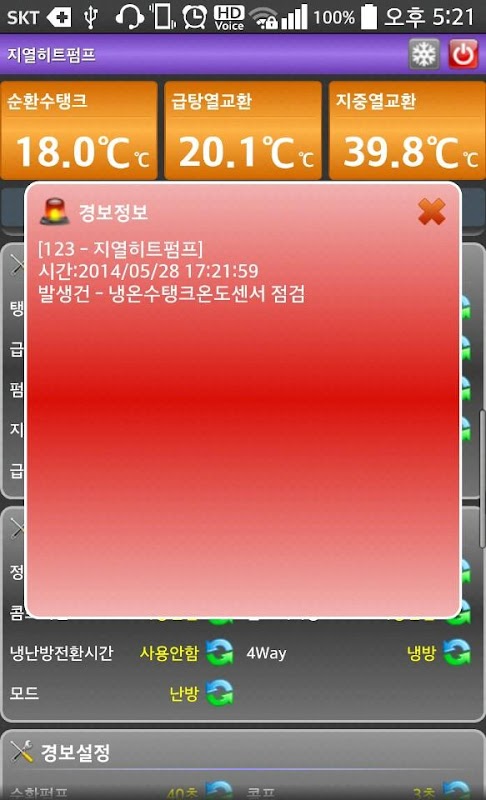 삼영 지열하이브리드 히트펌프 어플로 서버 프로그램 연동 클라이언트의 안드로이드 버전