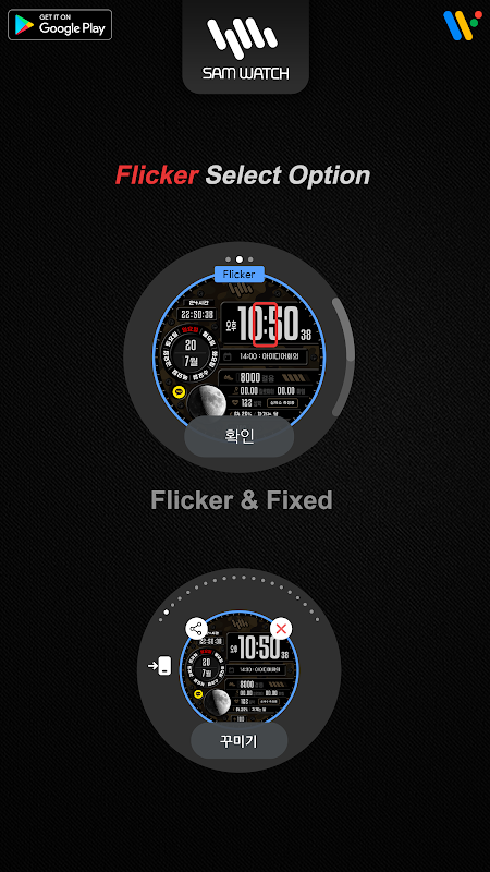 *스마트폰 앱은 다운로드 가이드를 설명하는 워치페이스 앱의 추가 앱입니다. 스마트폰 앱의 워치페이스 스크린샷과 실제 다운로드한 워치페이스 스크린샷과 다를 수 있습니다. SamWatch의 Watchface 앱 제품에는 대부분 스마트폰용 앱이 포함되어 있습니다.
