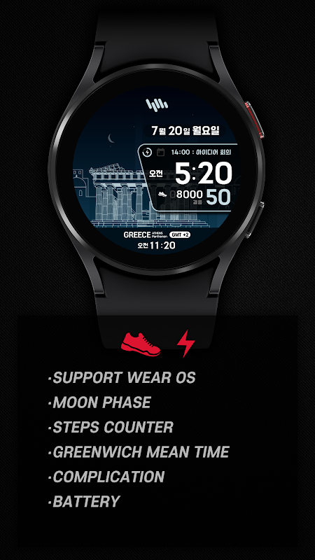 WatchFace에는 배터리, 스탭 카운터가 있습니다.