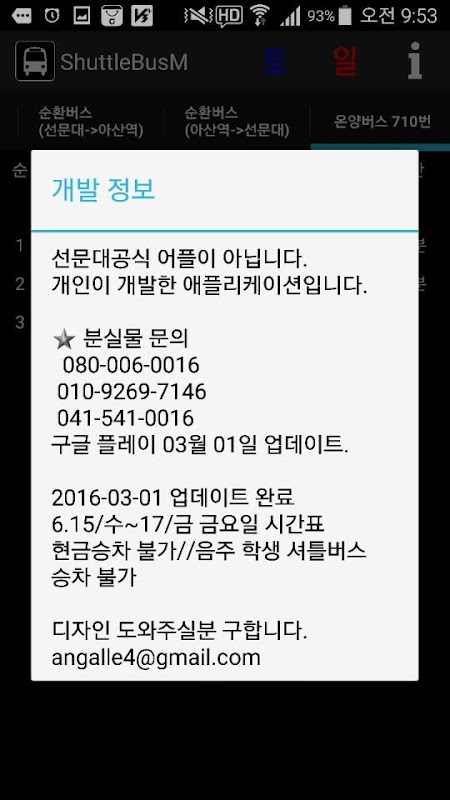 1. 평일/주말 셔틀 시간표 제공2. 시간표 업데이트 알림 서비스 제공3. 시내버스 시간표 제공.