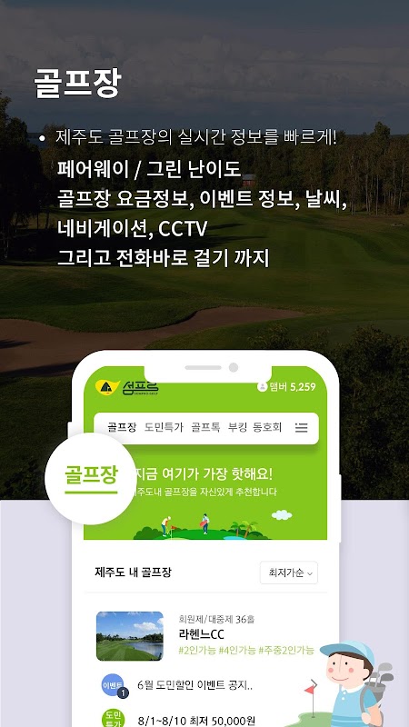 골프장 별 이벤트, 날씨, 네비, CCTV 정보, 골프장 후기까지 손안에서 확인!