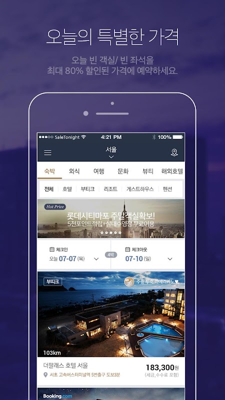 국내/해외 숙박 당일특가 구매 할인 APP- 세일투나잇