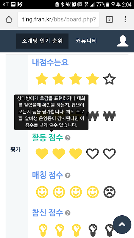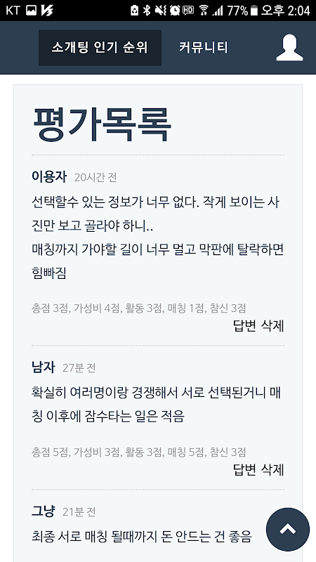 가짜 리뷰가 판치는 소개팅앱의 정당한 소비자 알권리를 위한 평가 및 랭킹 제공
