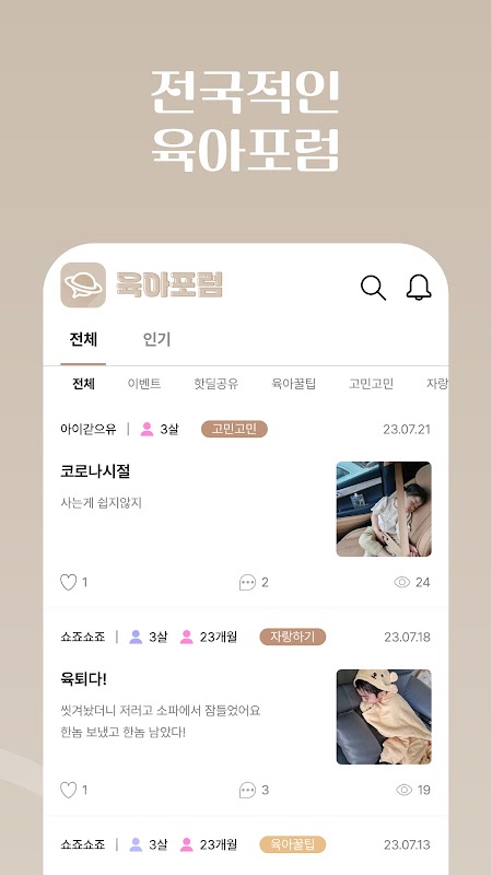 소소한 일상글, 기억에 남는 장소나 육아템 추천, 아이가 아프거나 특정 문제로 힘들었을 때 해결한 경험 등을 편하게 나눠주세요.