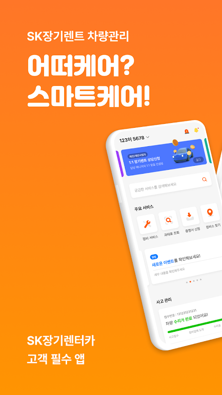 [슬기로운 운전생활 가이드 스마트케어! SK 장기렌터카를 이용하시는 고객님이 보다 쉽고 편리하게 내 차를 관리할 수 있도록 도와드립니다.]
