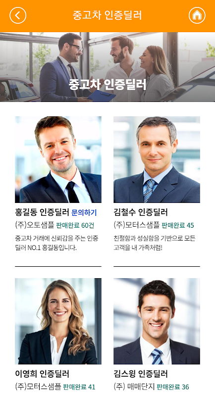 *해당 앱은 중고차 매매 업종 샘플앱으로 제작되었습니다.