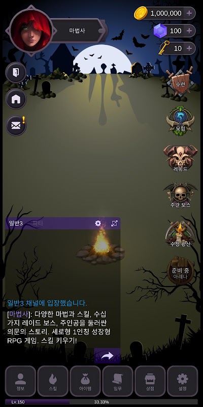 다양한 마법과 스킬, 수십 가지 레이드 보스, 주인공을 둘러싼 의문의 스토리. 세로형 클리커 RPG 게임. 스킬 키우기!