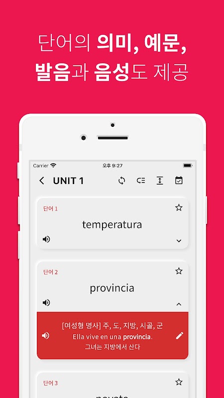 걱정하지마세요. 스페인어 단어는 여러분께 스페인어 단어 발음을 음성으로 지원하고 있습니다.